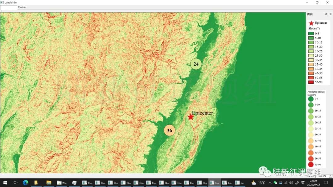 分析结果认为在震中附近30-40度以上坡度地区就可能发生滑坡,而震中附近地形又很复杂,因此滑坡的风险很高。这与本次花莲地震实际震害情况相符。